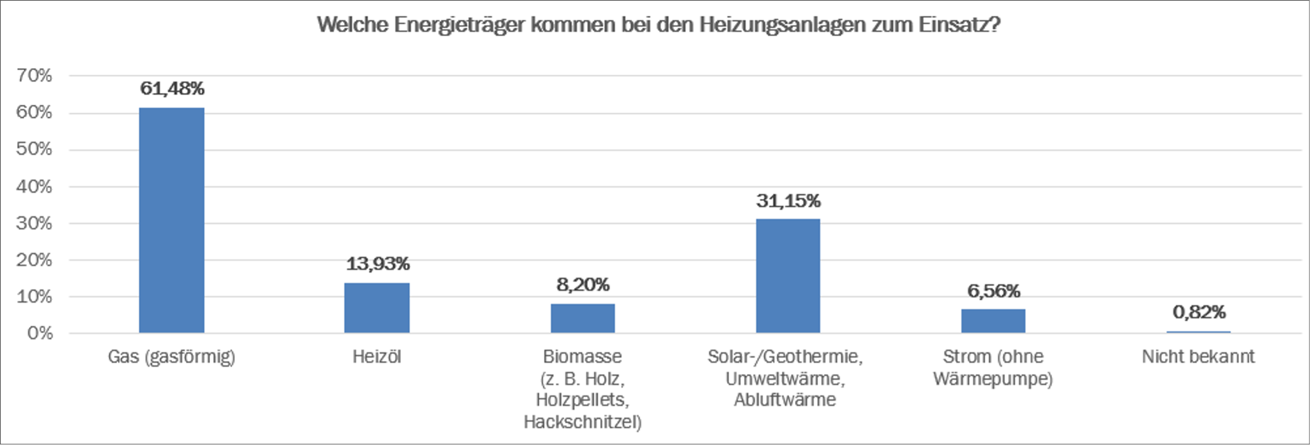 - Wärmepumpe (61,02 %) und Anschluss an ein Wärmenetz (30,51 %) sind die beliebtesten Optionen.